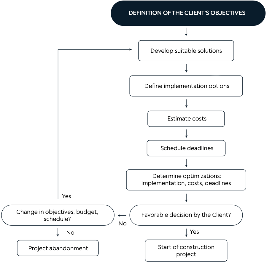 5) The realization of all the partial phases of a construction project: